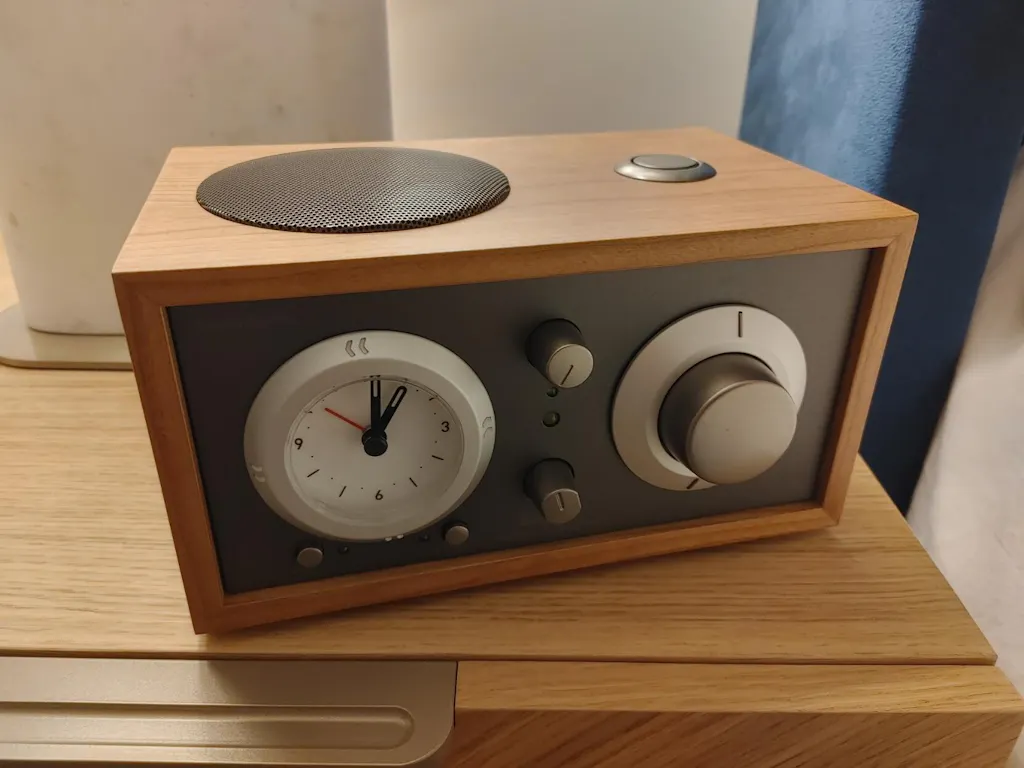 If this clock radio is going to be a considered a premium clock radio, the clock should at least have a smooth non ticking hand to start. The clock itself looks cheap and is small and hard to read when viewed on an angle. The back light should have a brightness setting in ordered to be called premium. The "low" light is still bright enough to be bothersome in a pitch dark room. The radio stations indicated on the front is nearly impossible to read without a light directly pointed at it. The numbering and lettering is nothing like the marketing pictures on the website. The font colors blend right into the front panel color which needs addressing. This is truly an issue as you would have to guess what radio station you are tuning into. The construction of the overall product is of high quality as all the knobs have a tension feel when turned. The wooden exterior is unique and feels premium. The radio reception is good especially when you use the antenna. The sound quality is 8/10 for the size but I wouldn't call it outstanding. A $50 Sony/JBL BT speaker would sound just as good. I don't find the bass too heavy as someone mentioned in a previous review. This premium clock radio really should have a stereo speakers. The snooze button doesn't seem to function after the radio alarm goes off as the alarm never come back on as it should have 10 minutes of snooze. The BT feature pairs fine like any other BT speaker. Overall, the value for money, I would say this radio should not cost anymore than $200CAD. It is highly overpriced for what it is. If you are looking for a unique classic clock alarm radio, this might be a consideration but I wouldn't put it at the top of the list.